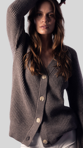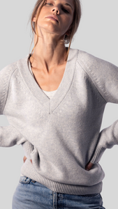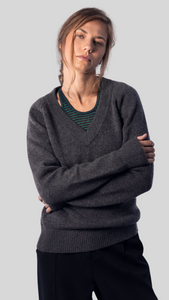 Our V-neck jumper is made from the highest quality Wool and Cashmere blend. It boasts a chunky 5-gauge weight, which means that the more yarn that is used, the better it wears. This luxurious sweater is the perfect addition to any wardrobe, providing both warmth and style in equal measure. The carefully crafted design ensures a comfortable and flattering fit, making it a versatile piece that can be dressed up or down.
